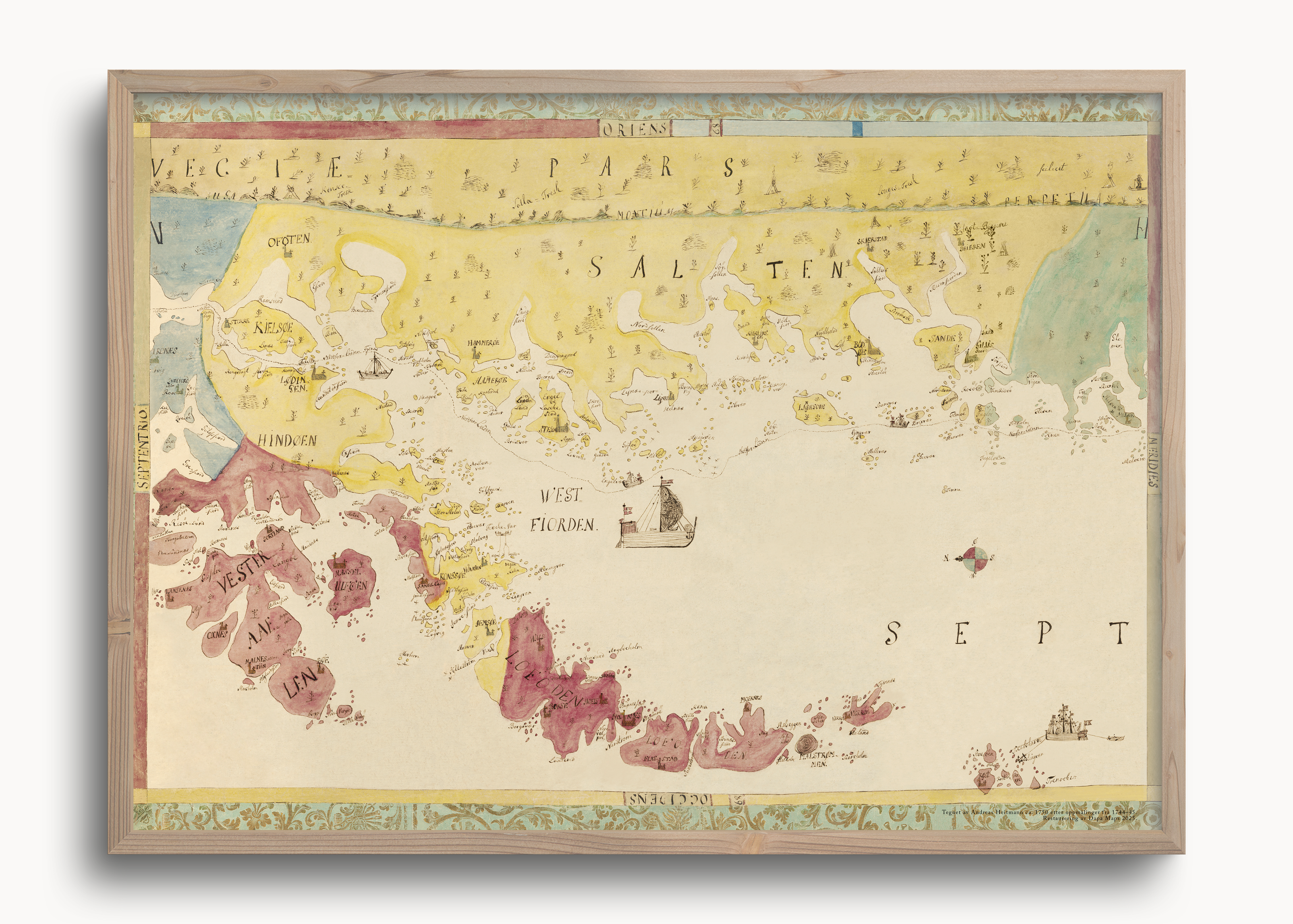 1803 ble dette mesterverket tegnet av Ditlef Wibe, Carl Frederik Grove, Benoni d'Aubert og det ble utgitt av Det Konglige Søekaarte Archiv. Gjennom vintern 2025 gjorde vi en restaurering av kartet slik at det kan få et langt liv. Noen detaljer som vi synes gjør kartet ekstra spesielt: